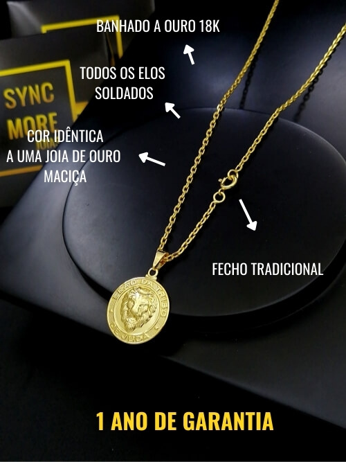 Modelo: Corrente Cadeado 1,5mm + Pingente Redondo Leão da Tribo de Judá