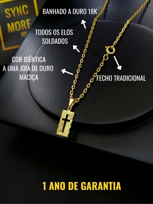 Modelo: Corrente Cadeado 1,5mm + Pingente Placa Retangular Cruz Vazada