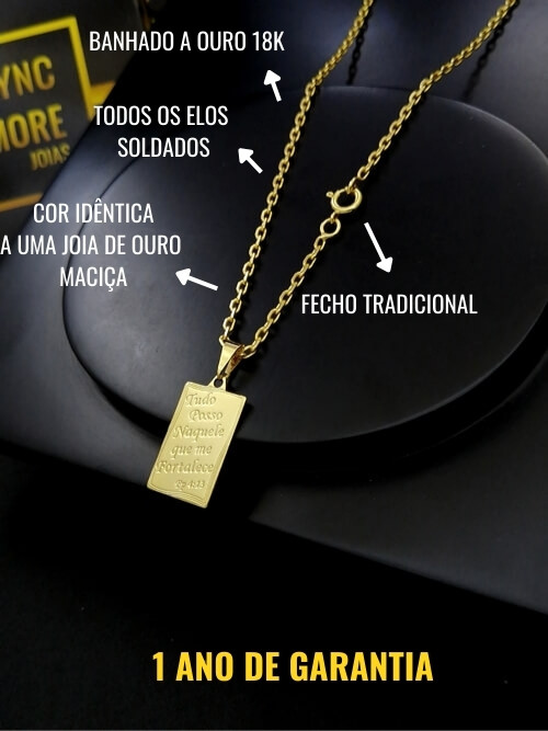 Modelo: Corrente Cadeado 1,5mm + Pingente Placa Tudo Posso Naquele que Me Fortalece