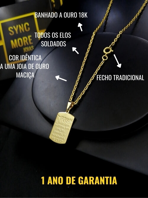 Modelo: Corrente Cadeado 1,5mm + Pingente Placa Versículo Mateus 21:22