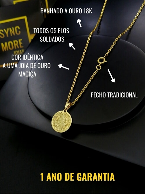 Modelo: Corrente Cadeado 1,5mm + Pingente São Bento Dupla face