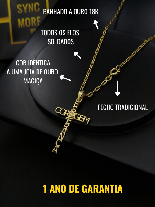 Modelo: Corrente Cadeado Alongado + Pingente Cruz Esperança Coragem