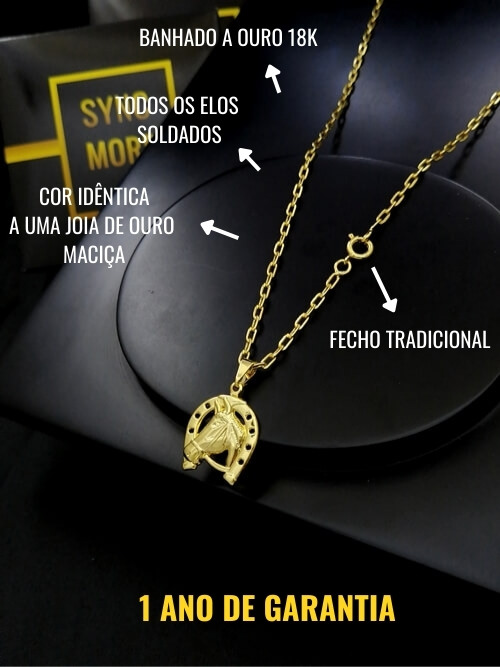 Modelo: Corrente Cadeado Alongado + Pingente Ferradura Cara de Cavalo P