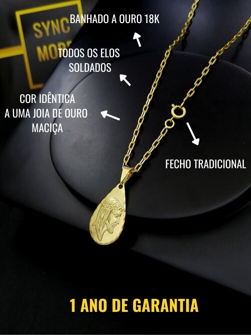 Modelo: Corrente Cadeado Alongado + Pingente Oval com Perfil de Cristo