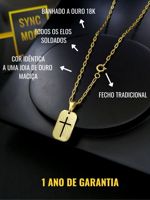 Modelo: Corrente Cadeado Alongado + Pingente Placa Arredondada Cruz Vazada