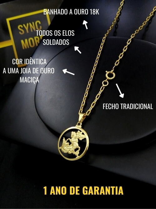 Modelo: Corrente Cadeado Alongado + Pingente Redondo São Jorge Vazado P