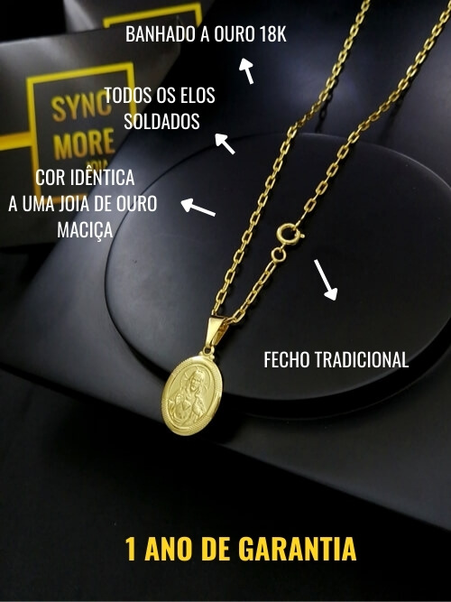 Modelo: Corrente Cadeado Alongado + Pingente Oval Sagrado Coração de Jesus
