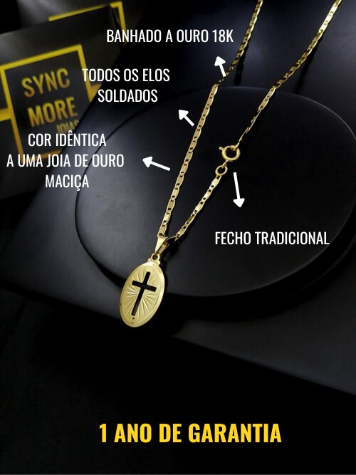 Modelo: Corrente Piastrine 2,5mm + Pingente Oval Cruz Vazada