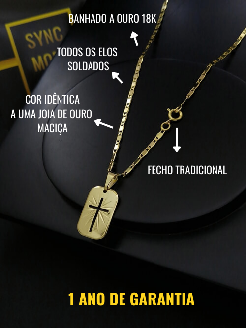 Modelo: Corrente Piastrine 2,5mm + Pingente Placa Arredondada Cruz Vazada Banhada a Ouro 18K