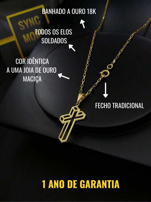 Modelo: Corrente Tijolinho 1,5mm + Pingente Cruz Vazada 3D