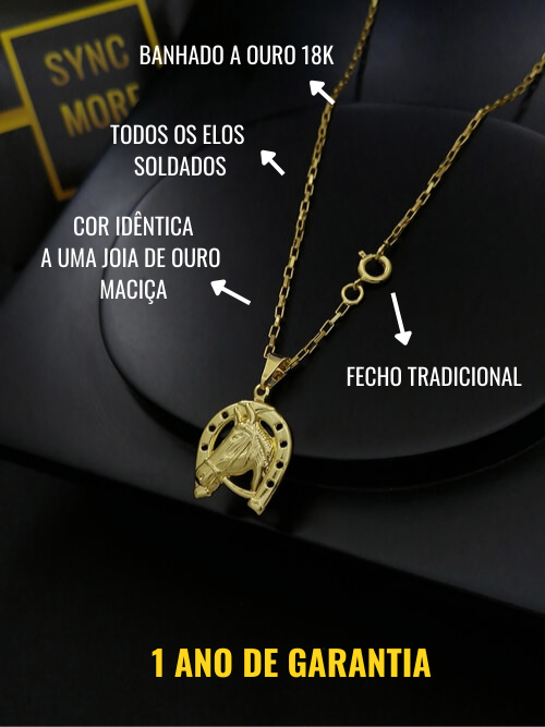 Modelo: Corrente Tijolinho 1,5mm + Pingente Ferradura Cara de Cavalo P