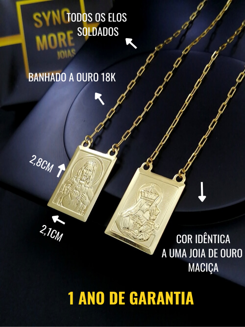 Modelo: Escapulário Dupla Sagrado Coração de Jesus / Nossa Senhora do Carmo e dizeres : "Pela Graça Sois Salvo" e "O Senhor te Abençoe e te Guarde.